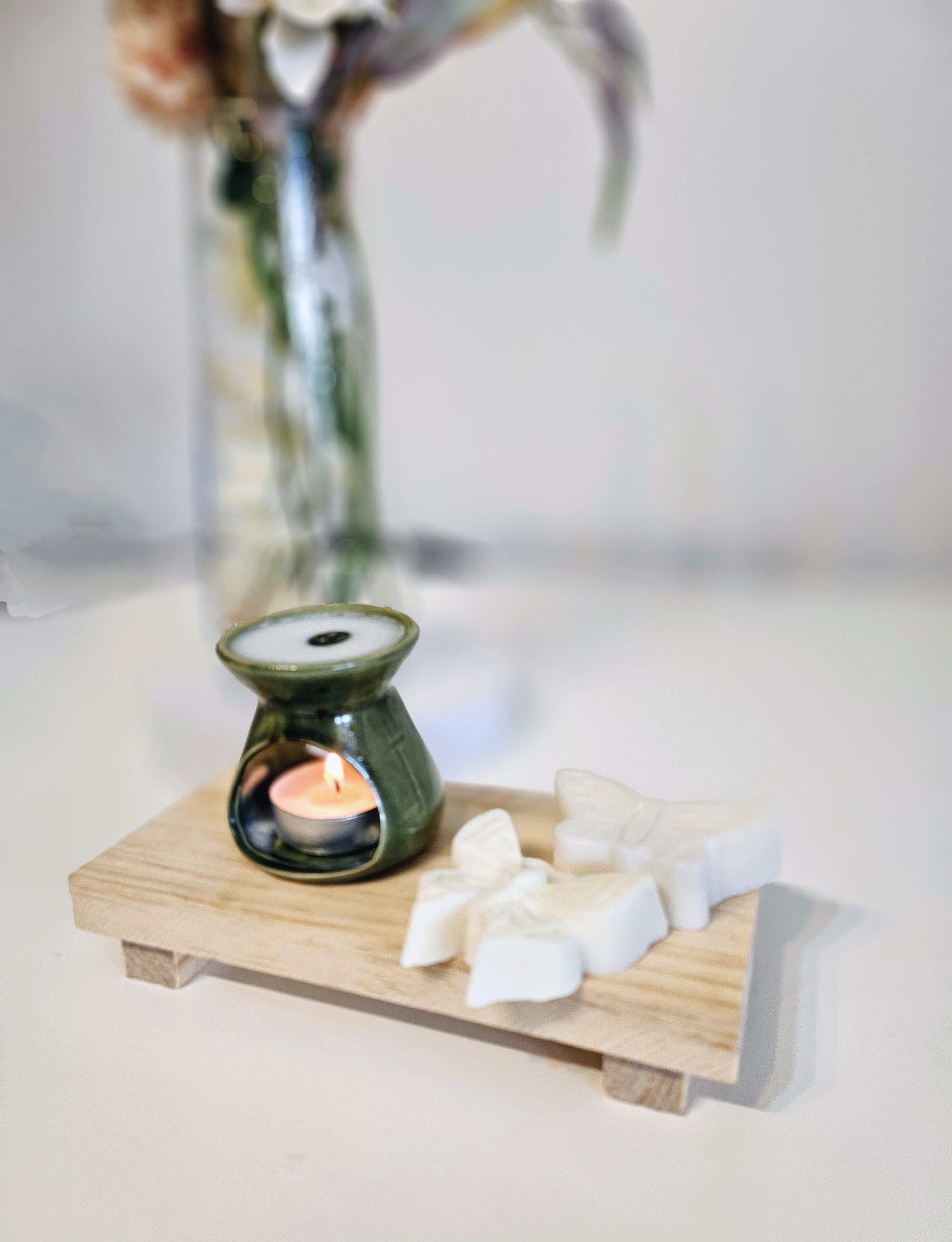 Place one or two wax melts in your butterfly burner’s dish. Light a tealight candle beneath or use an electric burner as per your burner’s instructions. Allow the wax to gently melt and release its fragrance. Always use on a heat-safe surface and never leave unattended.